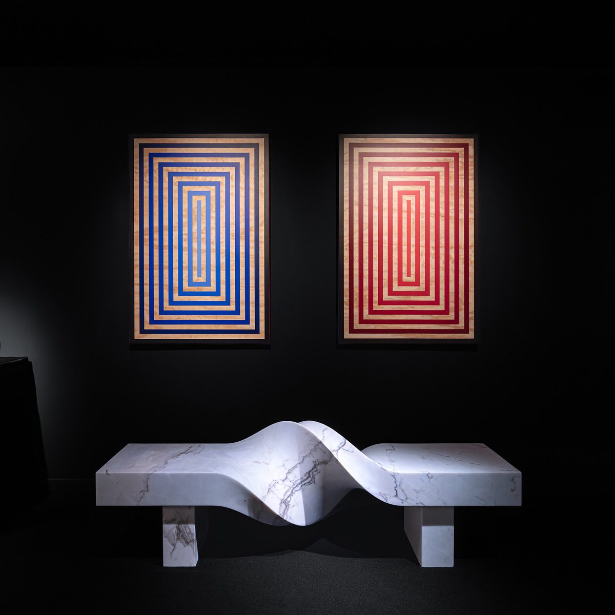 The artist invites the public to engage with the piece by sitting on the sculpture, embracing the curve of the loop, and enjoying a face-to-face encounter in the spirit of a “conversation” seat — a furniture style from the Second Empire, known to English speakers as a “love seat”.